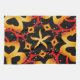 Orange und Rot auf Schwarz, um eine strahlend positive, reiche Energie zu geben - Schmetterlingherzen - hübsche, funkelnde Sterne - Textilmuster, das an das Batik-Muster erinnert