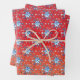 Abstrakte Schneeflocken in Rot und Blau Geschenkpapier Set