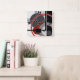 Abstrakte, schwarz-rote Malgeometrie Quadratische Wanduhr
