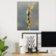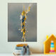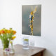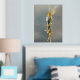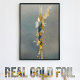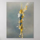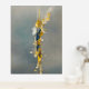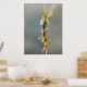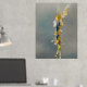 Eine abstrakte Silhouette in Aquarellfarbe in Blau, Gelb und Grau mit echten Goldfolienelementen. Eine wunderbare Dekoration für jede Zuhause.