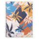 Abstrakt gestrichene helle und farbenfrohe Sommerpalmenmuster, Notizbuch. Notebook-Features, eine Single-Template-Textzeile für den Namen oder anderen Text in dunkelblau auf passendem rosa Sandlabel.