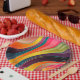 Abstraktes intensives jazziges, perlenfarbenes Design mit Regenbogen. Lass dieses unterhaltsame humorvolle Design machen das Reden für dich. Dieses Design wird jedes Zimmer in jedem Party aufheitern