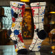 Mit diesen abstrakten Spritzer-Socken mit roten, blauen, gelben und schwarzen Splashs im cremefarbenen Hintergrund wird ein kühn künstlerisches Statement gesetzt. Das geometrische Gitter fügt dem dynamischen Chaos eine Struktur hinzu und schafft ein auffallendes und modernes Design. Diese Socken sind perfekt für kreative Individuen und Trendsetter geeignet und bringen Energie und Stil in jeden Schrank.