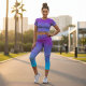 Modernes Design in den Capri Leggings mit verstreuten Sternen in verschiedenen Größen auf abstrakt lila türkisfarbenem Gradienten.