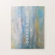 Der abstrakte, weiche Strand, der Ozean, die Wolken bemalen Puzzle aus Jenn's Emporium. Schöne bemalte abstrakte Strandkunst perfekt für den Strand oder See Zuhause oder Ferienvermietung Immobilien. Strandhaustypografie.