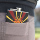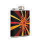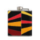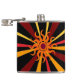 Dieser dekorative angesagte Kolben weist ein abstraktes geometrisches Muster der Sonne auf und strahlt in Rot, Gelb, Gold, Orange und Braun auf einem reinen schwarzen Hintergrund.