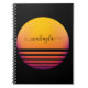 Ein Notizbuch, das mit Ihrem Namen personalisiert ist und in Orange- und lila-Farbtönen auf schwarzem Hintergrund eine stilvolle Sonne bietet.