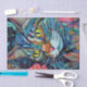 Eine farbenfrohe Abbildung einer Katze in hellen Farben und Blumenmustern. Ideal für Geschenkverpackungen oder Dekodierung und Handwerksprojekte.