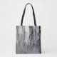 Diese Tüte präsentiert sich mit Baumreflektionen, die ein schimmerndes abstraktes Muster auf dem Teich in Schwarz, Weiß, Silber und Grau erzeugen.