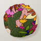 Abstrakte tropische Blätter und Blume Rundes Kissen