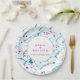 Moderne abstrakte Kunst flache Strand Wellen Hochzeitszeitung Teller mit Ihrem eigenen Paarnamen und Hochzeitsdatum anpassen. Ideal für einen einfachen Strand moderne Kunst tropischen Strand oder exotische Küstenhochzeit. Andere passende Hochzeitsartikel sind erhältlich. Abstraktes Gemälde in Aqua-Blau, Karminrosa und Orange auf Weiß aus einem originalen Gemälde mit Tinte und Gouache, das von Sarah Trett für www.mylittleedenweddings.com entworfen wurde