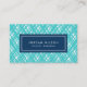 Diese farbenfrohe Visitenkarte zeichnet sich durch ein türkisfarbenes Strickermuster mit blauer Mitte auf der Vorderseite und einer passenden blauen Rückseite aus. Ideal für Innenarchitekten, Stylist, Party-Planer, Veranstaltungsplaner, Berater, etc. Personalisieren Sie es, indem Sie den Platzhalter-Text ersetzen. Für weitere Optionen, wie zum Beispiel den Schriftart zu ändern und ihn zu vergrößern oder zu verändern, klicken Sie auf den Button "Anpassen". *Bitte beachten Sie, dass das Zazzle-Wasserzeichen, das in der Zoomvorschau angezeigt wird, NICHT auf dem gedruckten Endprodukt erscheint. © Rosewood and Citrus