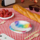 Abstrakte Vorlage Moderne Regenbogenfarben Pappteller
