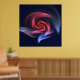 Poster mit origineller abstrakter Formgebung, Fraktal Design, das wie ein gedrehter, energetischer Wirbelsturm oder wirl aussieht. Das Bild kann auch an eine abstrakte Fantasy-Blume mit einer spektakulären Corolla erinnern oder es kann eine kosmische Rotation oder unbekannte Galaxie inspiriert werden. Die Farbkombination basiert auf Blau- und Rottönen, Farben, die normalerweise ein schönes Spiel ergeben.