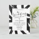 Chic Schwarz-Weiß Hochzeitseinladung mit abstraktem Aquarell Hintergrund.