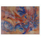 Ein abstraktes Aquarelldesign, eine schöne, dunkelorange und blaue Feier, eine Collage von Konfetti-Juwelen, die sich vom Zentrum eines kobaltblauen abstrakten Pinrads ausbreiten. Die Stücke von Konfetti fangen das Licht und funkeln wie Schmuck in der Glasstruktur des Schneidbrettes.  Es ist sehr hübsch von der Oberseite mit der cremefarbenen Unterseiten-Beschichtung des Schneidbrettes, die durch die.