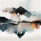 Eine wunderschöne und geheimnisvolle Bergwelt wird Ihren Geist morgens umherwandern lassen! Geschehen in einem minimalistischen Aquarellstil.