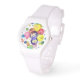 Das ist eine originelle Aquarellfarbe abstrakt von bunten Kreisen.