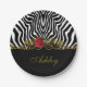 Abstrakte Zebra Blume Red Schwarz-weiß Gold Pappteller