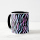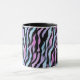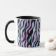 Stilvolle, elegante Tasse mit abstraktem Zebramuster in Schwarz, Blau, Violett und Rosa, hergestellt aus meinem original Acrylgemälde.
