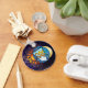 Abstraktes Aquarius-Symbol in leuchtenden Farben mit Sonne, Mond und Sternen auf einem Sternenhintergrund aus dem Hubble-Weltraumteleskop.
