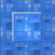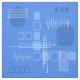 Ein modernes abstraktes Kunstdesign aus der Mitte des Jahrhunderts, das in den 1950er Jahren perfekt in die Welt passte. Verschiedene Formen ovaler Kreise und Linien in wahrhaft blau.