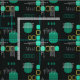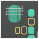 Ein modernes abstraktes Kunstdesign aus der Mitte des Jahrhunderts, das in den 1950er Jahren perfekt in die Welt passte. Verschiedene Formen ovaler Kreise und Linien in Türkis und Gold auf schwarzem Hintergrund.
