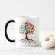 Abstrakter Baum mit Wurzeln und bunten Blätter. Verwandlungstasse
