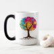 Abstrakter Baum mit Wurzeln und bunten Blätter. Verwandlungstasse