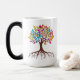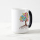 Abstrakter Baum mit Wurzeln und bunten Blätter. Verwandlungstasse