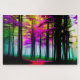 Abstrakter farbenfroher Wald mit schwarzen Bäumen, Puzzle
