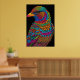 Abstrakter, farbiger Zeichn von A Bird auf schwarzem Hintergrund. Das Seitenverhältnis beträgt 2:3. Es wurde als 24"x36" gedruckt