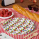 Ein Fischsymbol mit Farbblöcken ist ein einzigartiges grafisches Design für Fische, und Köche an Geburtstagen und Feiertagen.