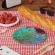Abstrakter Garten mit Crimson Sunset Pappteller
