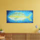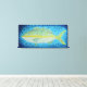 Dieses abstrakte Acryl auf Holzkunst im Stile von Impasto ist ein Originalwerk des Künstlers Edward Guthy mit dem Titel Yellowfin Tuna. Die lebhaften Farben Blau, Weiß und Gelb zeigen einen Gelbflossenthun, der in der Tiefsee schwimmt.
