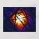 Diese zeitgenössische, feine Postkarte präsentiert eine abstrakte Interpretation des Mondes nachts durch die Zweige eines Baumes. Die brillanten Farbtöne Weiß, Gelb, Orange, Rot, Braun, Rosa, lila, Magenta, Blau und Schwarz verleihen der Illusion eines modernen Buntglasmusters Ausdruck.