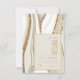 Dieses Hochzeitsdesign-Set, mit seinem abstrakten Geflecht fließender Gewölbe und Adern glitzernden Goldes, erinnert an auffällige Felsformationen und glitzernde Edelsteine. Die neutrale Farbpalette in den Farbtönen Champagner und Speckstein verleiht dem Ganzen einen besonderen Charme. Die hier gezeigte RSVP-Karte hat alles oben, mit einem Layout, das sie von der Masse abhebt. Fügen Sie einfach Ihre Antwort nach Datum und bevorzugte Formulierung mit der bereitgestellten Vorlage hinzu. Durchsuchen Sie ID903, um weitere Farbauswahl und koordinierende Stücke für diese einzigartige Hochzeitskollektion zu sehen.