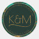 Dieses Hochzeitsdesign-Set, mit seinem abstrakten Geflecht fließender Gewölbe und Adern glitzernden Goldes, erinnert an auffällige Felsformationen und glitzernde Edelsteine. Die schmuckfarbene Farbpalette in smaragdgrünen Farbtönen verleiht dem Ganzen einen besonderen Reiz. Der hier gezeigte Gefälligkeitsaufkleber hat einen abstrakten Rahmen und einen dunkelgrünen Hintergrund mit einer Vorlage, um einfach eine Danksagung, Ihre Initialen und das Hochzeitstermin hinzuzufügen. Durchsuchen Sie ID903, um weitere Farbauswahl und koordinierende Stücke für diese einzigartige Hochzeitskollektion zu sehen.