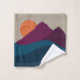 Eine schöne abstrakte Abbildung einer Berglandschaft und eines Sonnenuntergangs mit Herbstfarben, die von der Natur abgeleitet sind. Die Farbtöne sind Bordeaux, Orange, Blues und Beige. Ein rustikales Design, ideal für Herbst Herbst und Winter Wohngestaltung, Erntedank Dekoration und Geschenke.