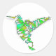 Abstrakte Art Rundkleber. Ein Kolibri, der durch geometrische Formen geformt wird.