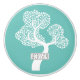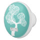 Abstrakte Kreisbaum und Name auf der aquamarinen Keramik Knob. Eine moderne Keramik mit einem weißen Baum aus Kreisen.