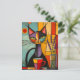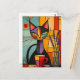 Abstrakter kubistischer Cat & Coffee Postkarte
