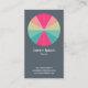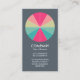 Eine klare, stilvolle und attraktive Visitenkartenvorlage mit einem 12 segmentierten Kreismotiv in einer Palette von 5 Farben. Hauptfirmendetails auf der Vorderseite, mit Namen und persönlichem Kontakt auf der Rückseite, mit dem gleichen Motiv und Stil.