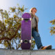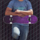 Abstrakter lila Hintergrund oder Papier mit hellem Skateboard