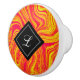 Mit diesem Knopf, der aus glänzendem Marmor mit hypnotischen, chaotischen Streifen in Gelb und Rot besteht, können Schränke oder Schubladen mit künstlerischer Zufälligkeit versehen werden. Personalisieren Sie Ihre Monogramm oder Initial(en). Design © W.H. Sim. Weitere Informationen unter zazzle.com/expressionsoccasions