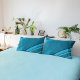Dieses wunderschöne Kissengerät zeichnet sich durch ein abstraktes Wirbles Design in trendigen aquamarinen Farbtönen aus.