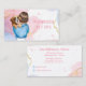 Abstrakter Niedlicher Hund bei der Pet Groomer Visitenkarte. Pet Groomer Business Card für jeden in der Haustierpflege. Das Design hat ein Haustierzüchter, das einen Welpen auf der Schulter hält, mit einem rosa und blauen abstrakten Hintergrund. Passen Sie Ihre Geschäftsdaten an.