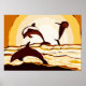 Abstrakter Ozean-Springer bei Sonnenuntergang Poster