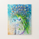 Abstrakter Pfau im Frühling mit Schnee und Blume Puzzle