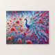 Abstrakter Pfau mit Papaya und Kornblumen Puzzle
